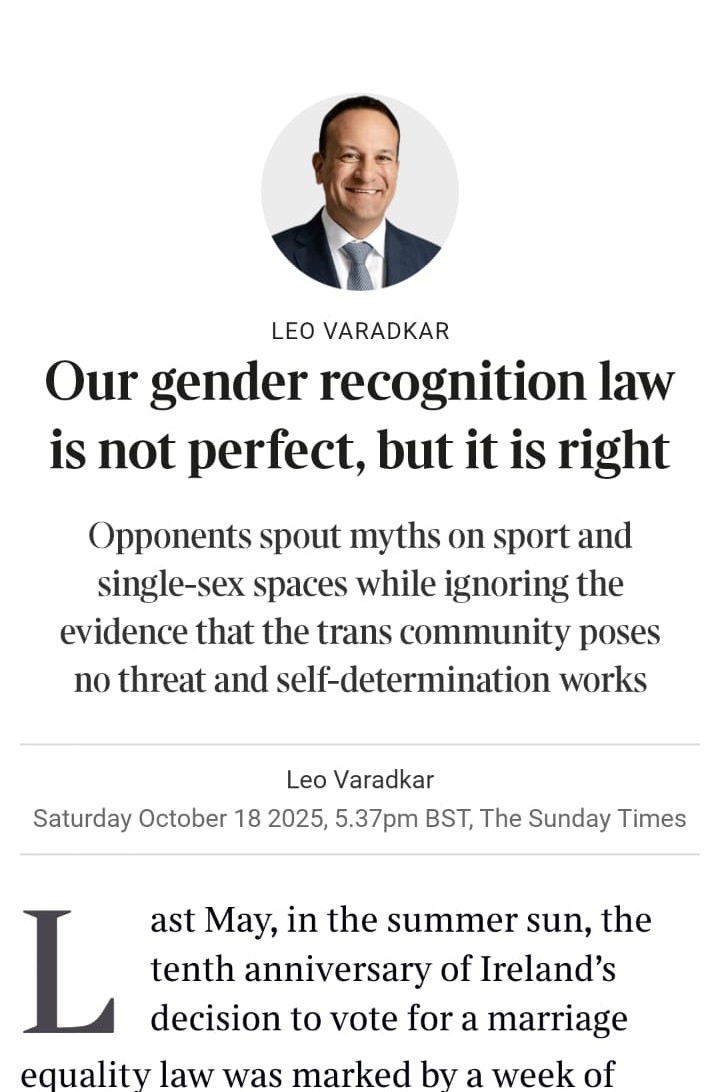Leo Varadkar’s article in The Sunday Times is both enraging and also somehow affirming. Varadkar demonstrates a limited understanding of the concerns women have been raising for the past ten years but he does at least mention the clash of rights. He may come down on the side of trans-identified people (especially the men who say they are women it seems) but in usual Leo ‘sleeveen’ style, he does offer an olive branch, but only after sending our blood pressure though the roof.